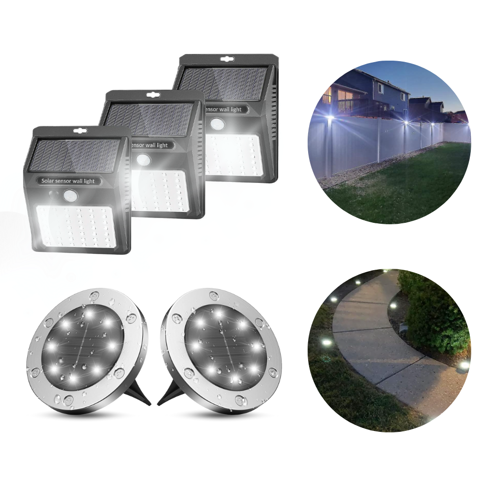 Kit Illuminazione LED Solare Senza Fili per qualsiasi parete e giardino : 3+2 GRATIS
