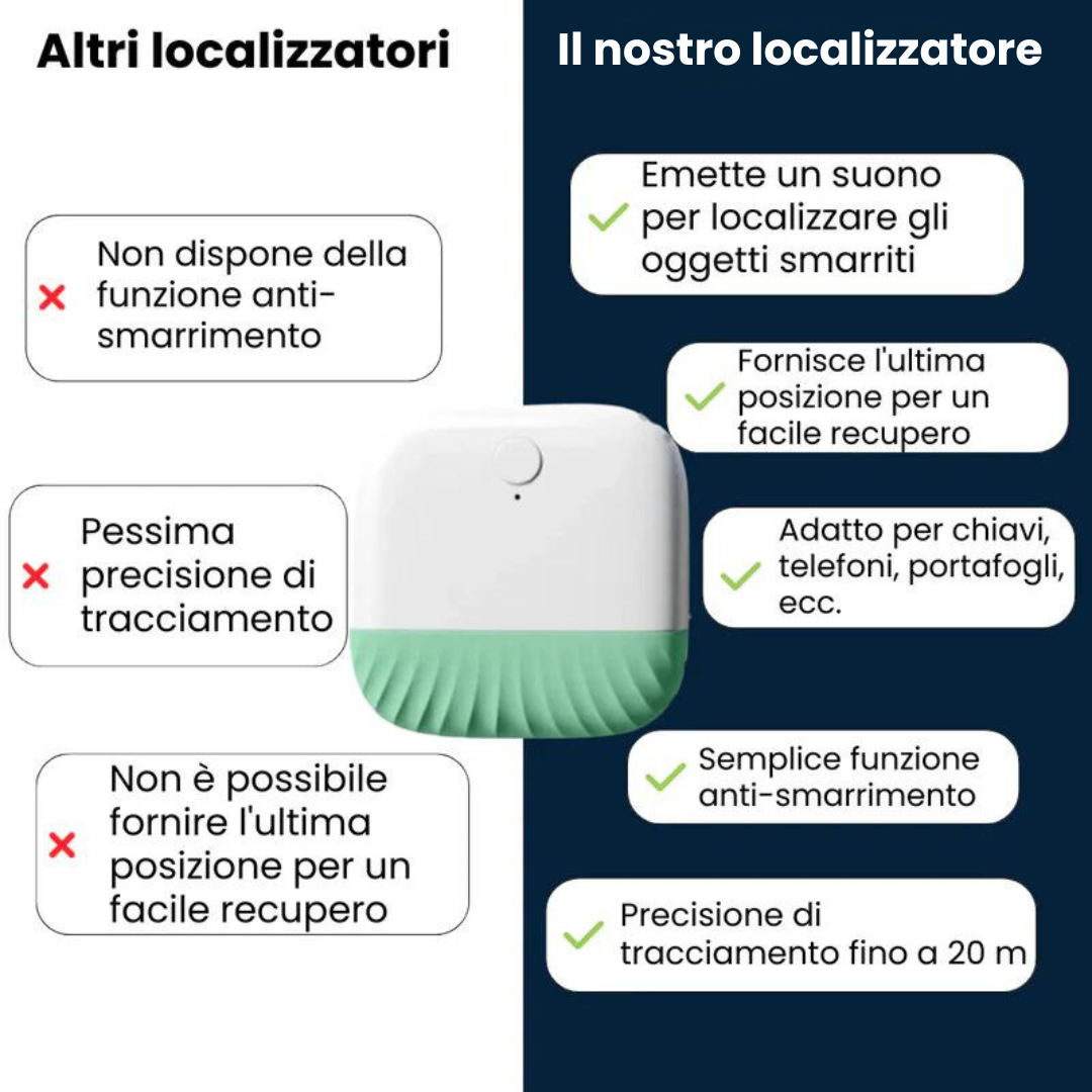 - Allarme Sonoro Integrato: Emette un suono che ti aiuta a rintracciare gli oggetti smarriti entro una distanza massima di 20-40 metri.